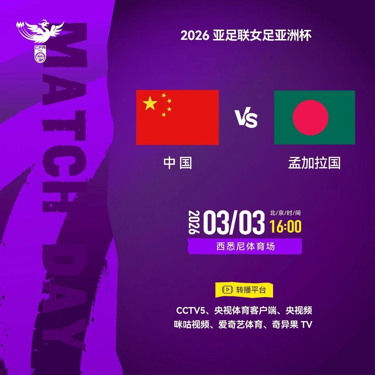 北京时间3月3日16:00,在2026女足亚洲杯首轮B组一场关键比赛中,作为卫冕冠军的中国女足,将对阵孟加拉国女足,由于双方实力差距较大,所以,中国女足应该会轻松拿到3分,收获开门红,在元宵节为球迷送上一份大礼。